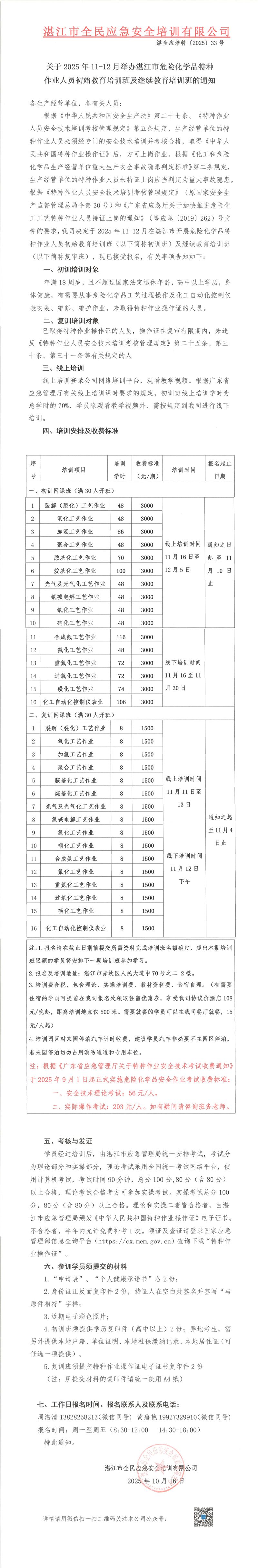 關(guān)于舉辦2025年11-12月份湛江市危險化關(guān)于舉辦2025年11-12月份湛江市危險化學(xué)品特種作業(yè)初訓(xùn)培訓(xùn)班的通知